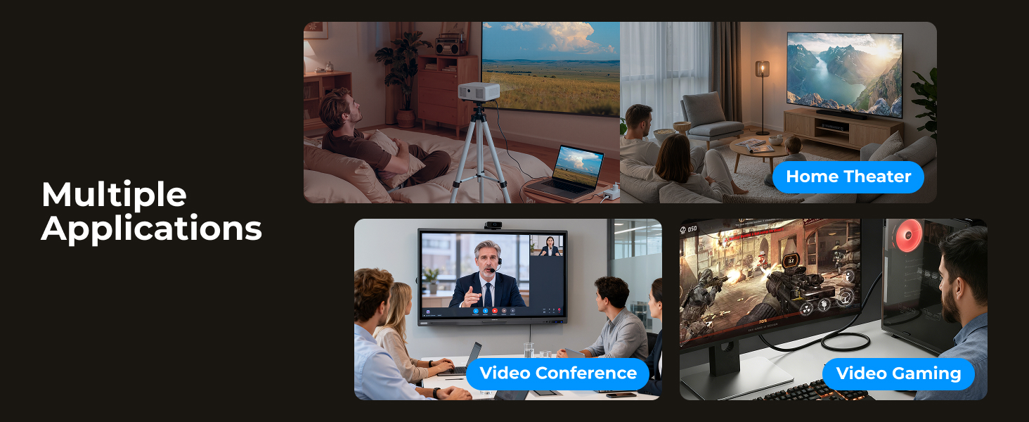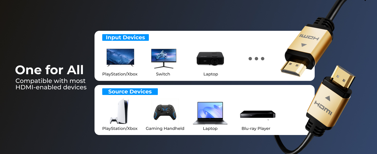 Unlock the full potential of your devices with our High Speed Male to Male HDMI Cable. Enjoy stunning 4K resolution at 60Hz, crystal-clear audio, and breathtaking visual effects. Built with multi-layer safety protection and advanced shielding, it ensures stable, secure performance in various environment. Featuring 3 connection modes, this cable seamlessly adapts to multiple devices and scenarios. Perfect for gaming, streaming, and professional setups — take your entertainment and work to the next level.